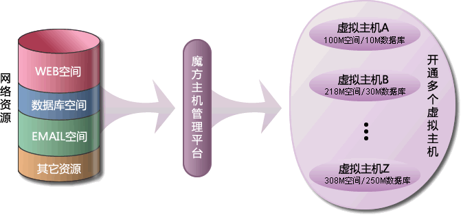 魔方主机是济南网站建设在虚拟主机技术基础上,最近推出的一个主机新产品。简单的来说,魔方主机是一个虚拟主机合集产品,它只用一次购买网络资源(如WEB空间容量、IIS链数、数据库空间容量等),即可开通多个虚拟主机,并可随时自由分配每个虚拟主机的可用资源。